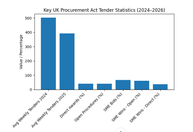 The Act’s Competitive Flexible Procedure (CFP) has become an important trend. This selection method is being used increasingly — particularly in construction, business services and IT — and now accounts for a meaningful share of published tender notices by value.